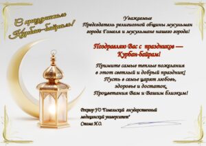 С праздником Курбан – Байрам, мусульман г. Гомеля, поздравил Ректор УО «Гомельского государственного медицинского университета», д.м.н., профессор – Стома Игорь Олегович Навигация по записям Поздравление с рождением! Тачьмухаммед Поздравление с праздником Курбан Байрам (Калинин Александр Федотович)